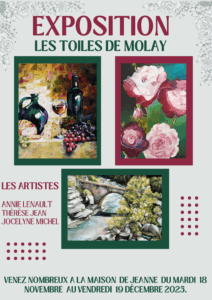Exposition de peinture « Les Toiles de Molay » du mardi 18 novembre au vendredi 19 décembre au grand salon de la Maison de Jeanne.